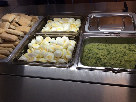 Maten lagas inte på skolan för att köket inte är utrustat för matlagning. Köket har inte ugnar och spisar, därför tillagar bambatanterna bara pasta, ris och potatis. Det kallas för mottagningskök.