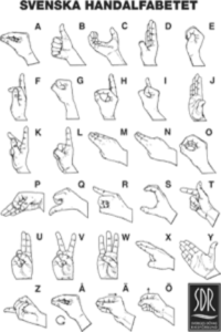 Klicka på bilden Svenska handalfabet för att lära er svenska handalfabet och mer information.