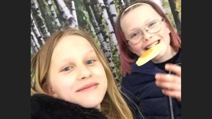 Kompisarna Julia och Molly bara några minuter innan de upptäckte branden i en galleria i Eskilstuna. Foto: Privat