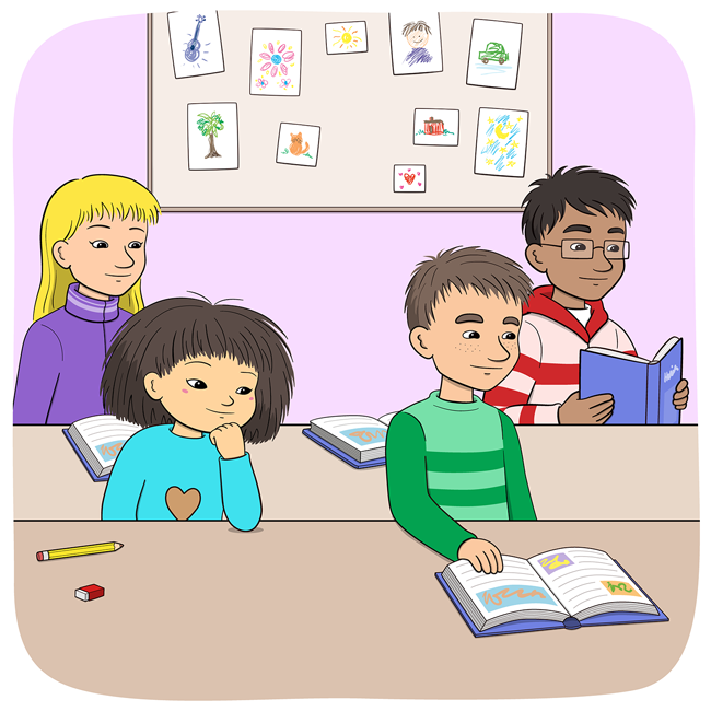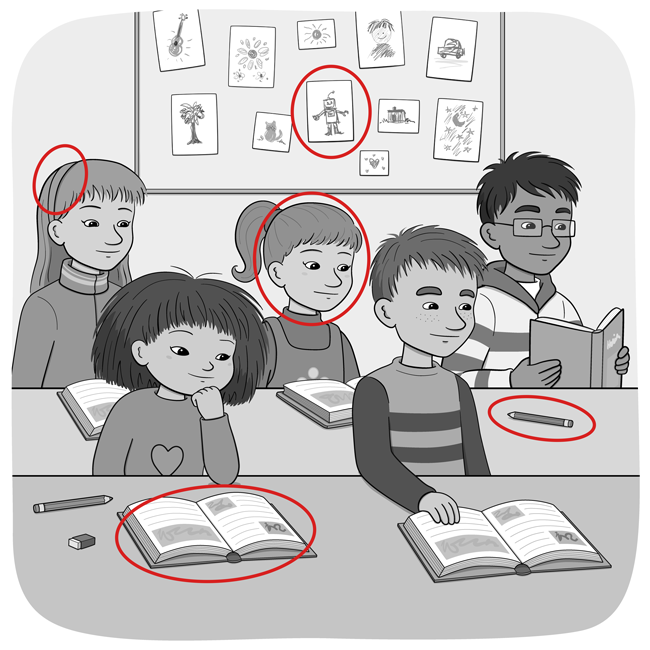 Lyssna Läshastighet: Långsam Vanlig Hög Finn Fem Fel nr 38 Läs och lyssna på bildserien Minja och Mino i skolan!