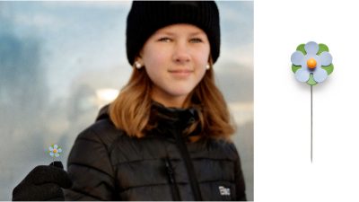 13-åriga Elina Hall har designat årets svart- och guldfärgade majblomm...